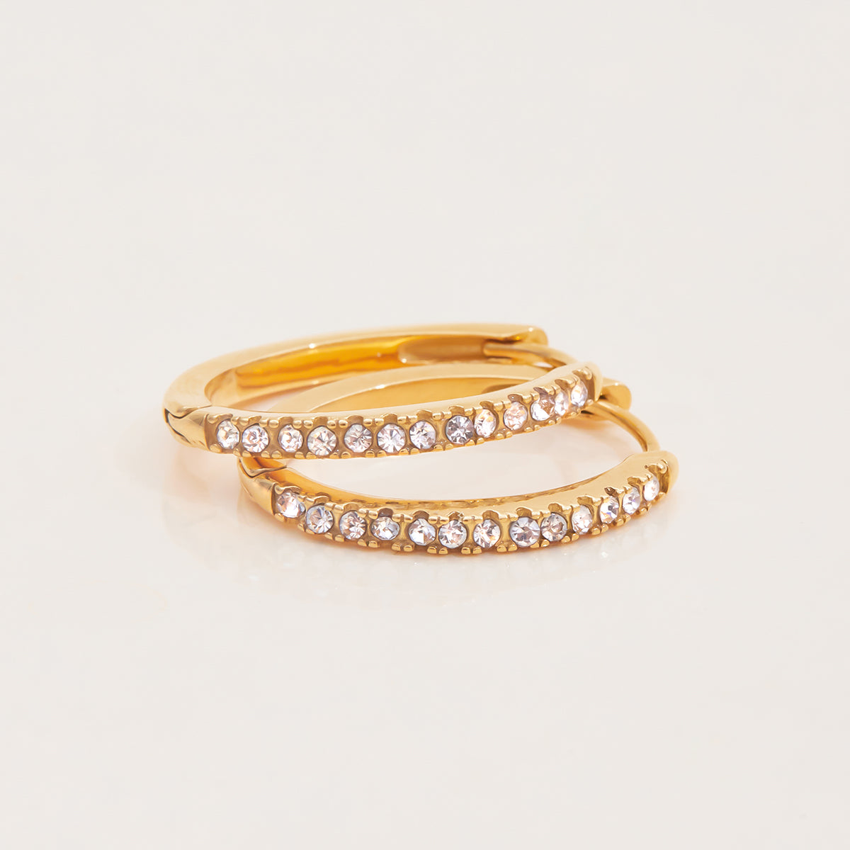 Elegante Creolen aus Edelstahl, 18K vergoldet und mit funkelnden Zirkonia besetzt. Zeitloses Design, das sowohl im Alltag als auch zu besonderen Anlässen perfekt glänzt.