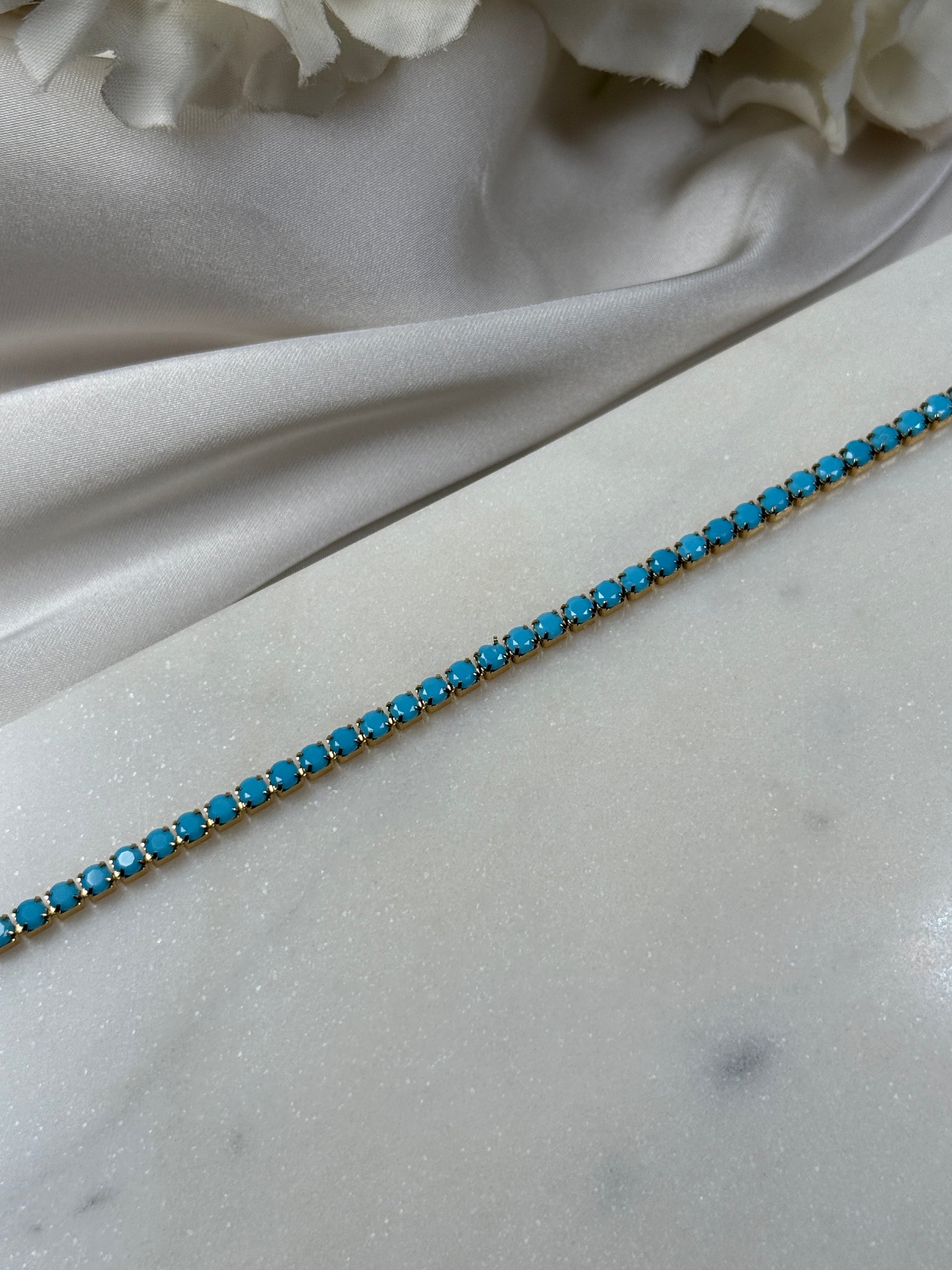 Strahlendes Armband mit zarten türkisfarbenen Steinen – frisch, sommerlich und ein eleganter Eyecatcher für jedes Outfit.