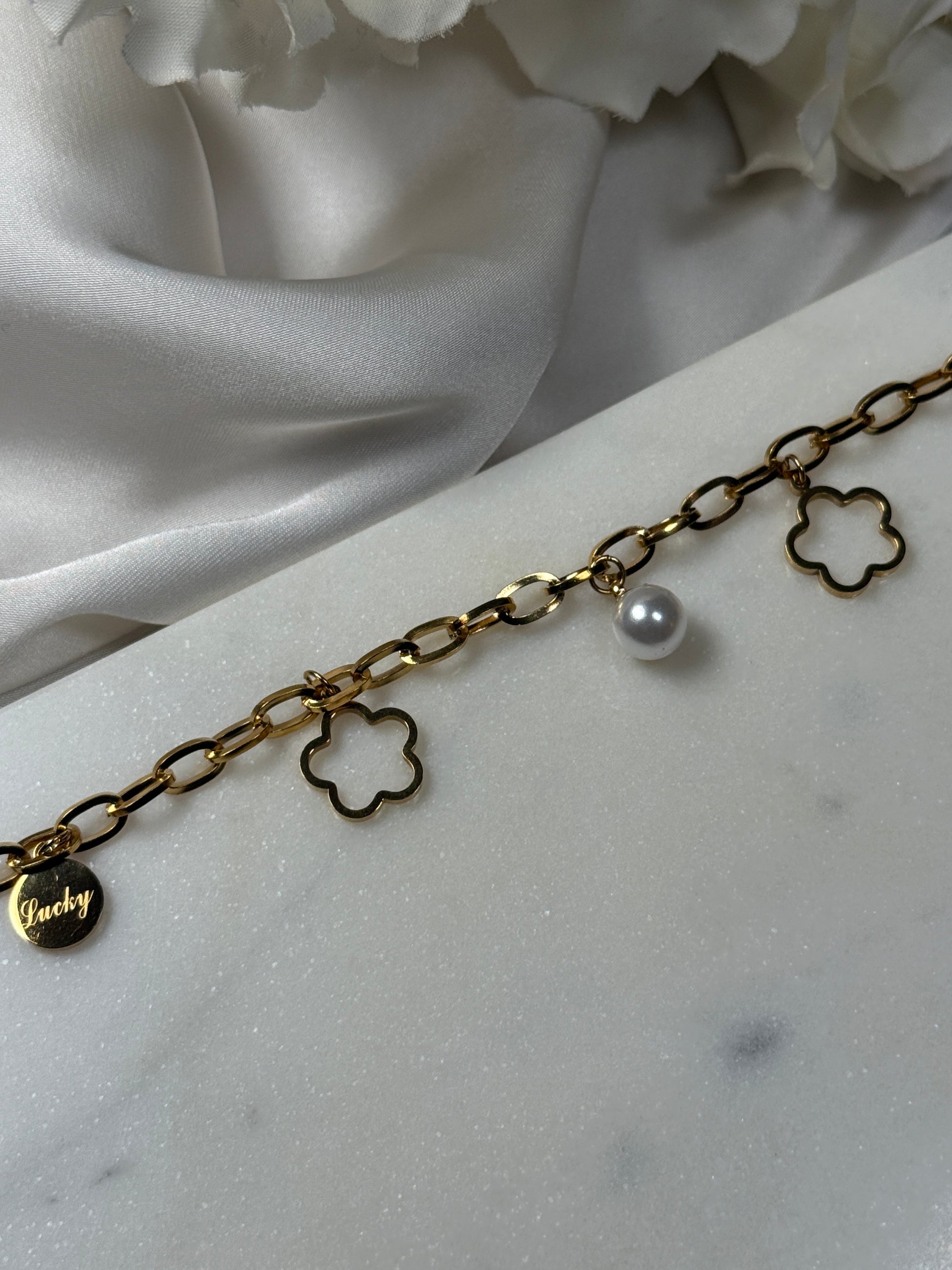 Filigranes Armband mit zarten Blütenelementen – ein feminines Highlight für jeden Tag und perfekt zum Layern mit anderen Schmuckstücken.