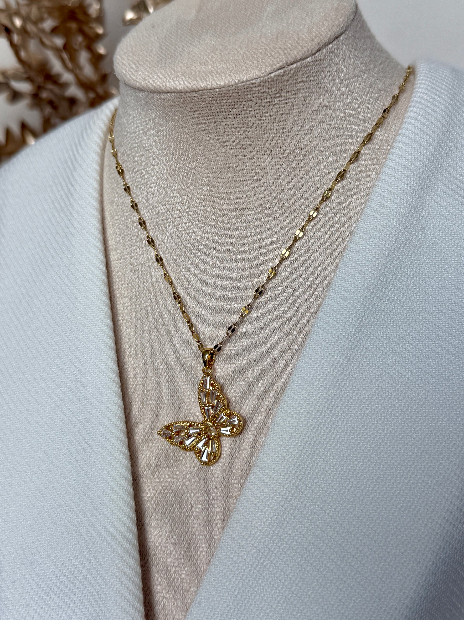 Zarte Halskette mit funkelndem Schmetterling-Anhänger – feminin, verspielt und ein echter Blickfang für jedes Outfit.