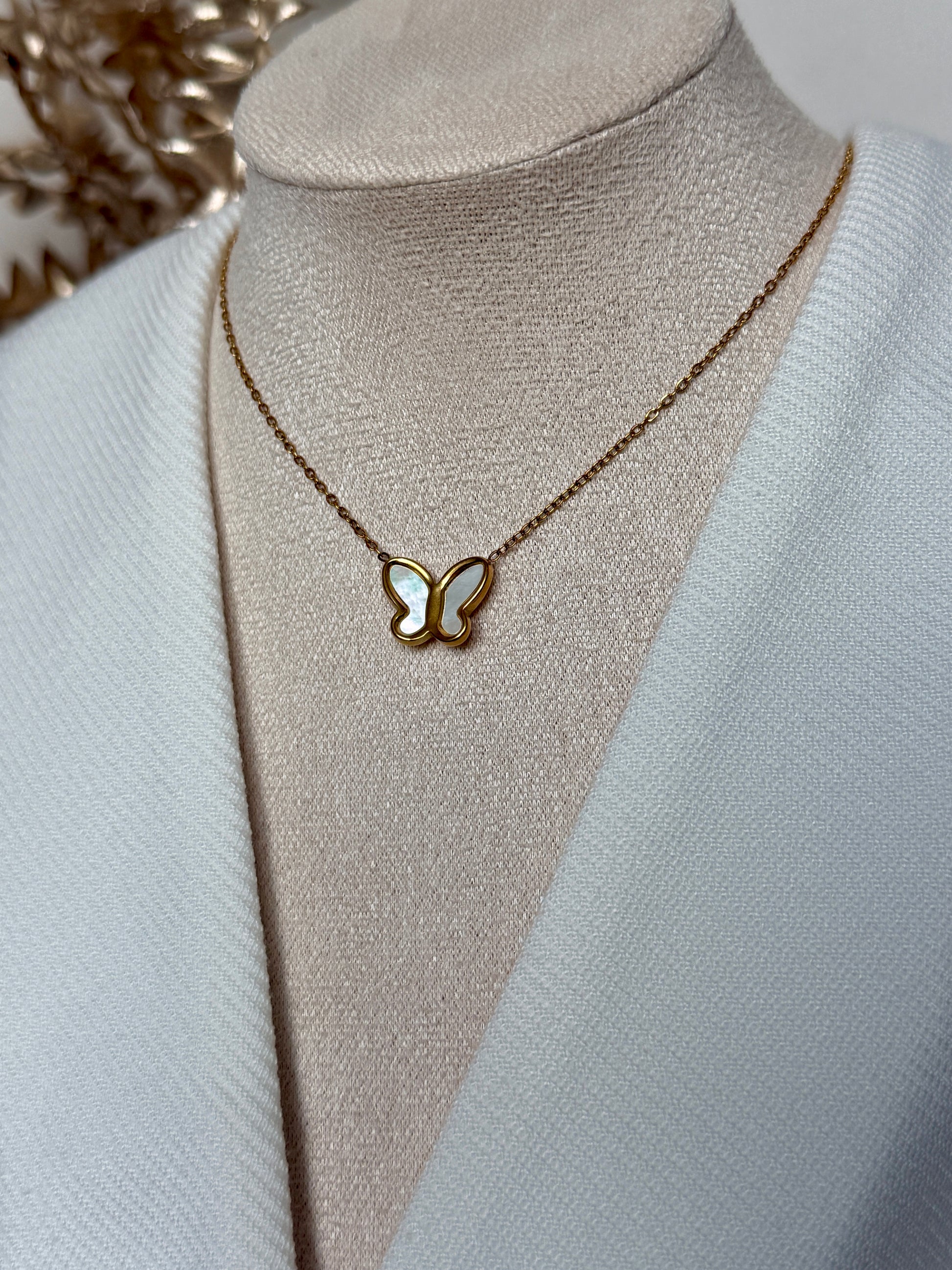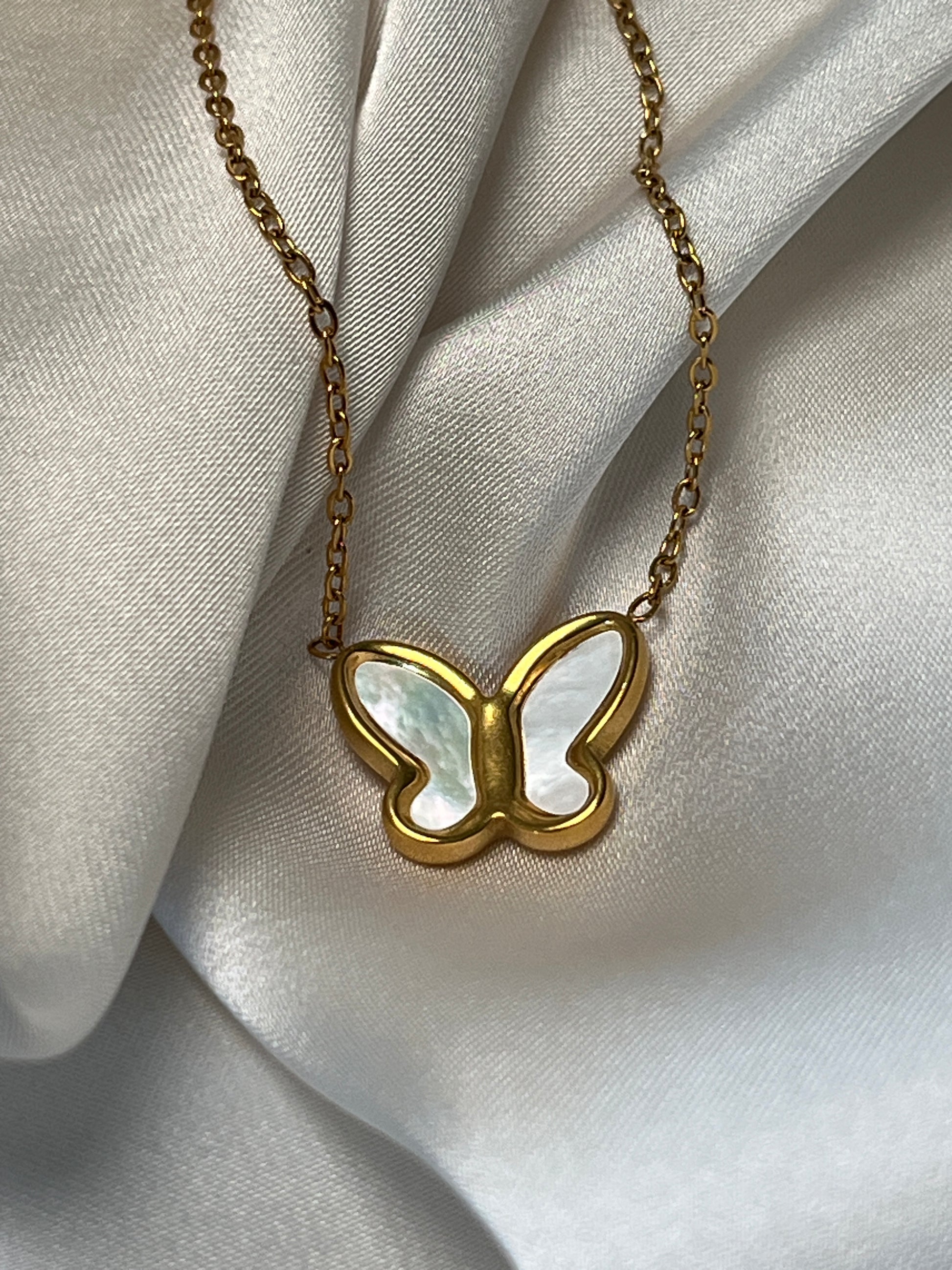 Zarte Halskette mit Schmetterlings-Anhänger in Perlmuttoptik – feminin, verspielt und ein stilvoller Blickfang für jeden Anlass.