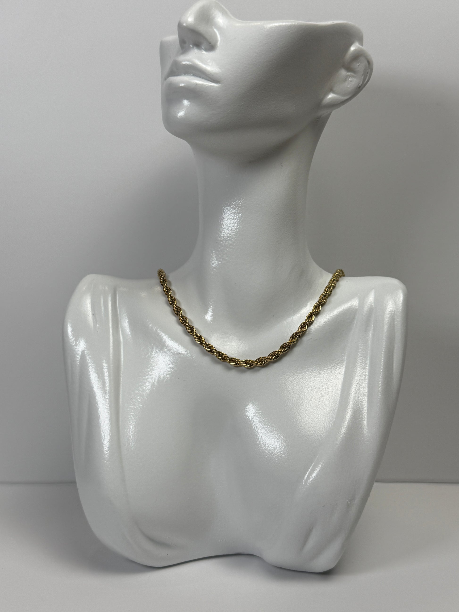 Feine Rope Chain aus 18K vergoldetem Edelstahl mit 3 mm Breite. Der geflochtene Look sorgt für einen edlen Glanz, der jedes Outfit aufwertet – ob solo getragen oder als Basis fürs Layering. Zeitlos, elegant und wasserfest.