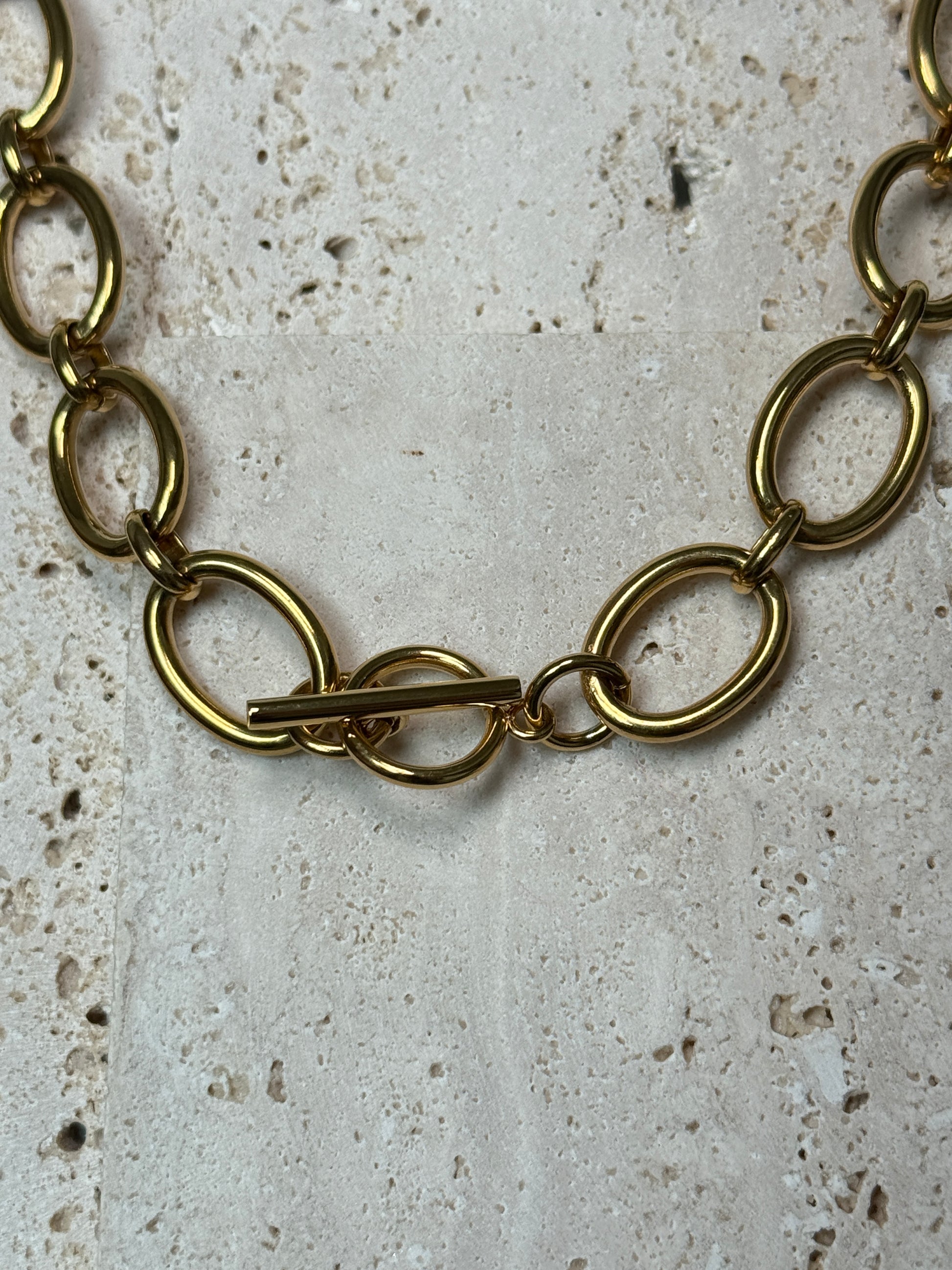 Markante Gliederkette mit großen ovalen Elementen – ein kraftvolles Statement-Piece, das jedem Outfit sofort eine moderne und elegante Note verleiht.