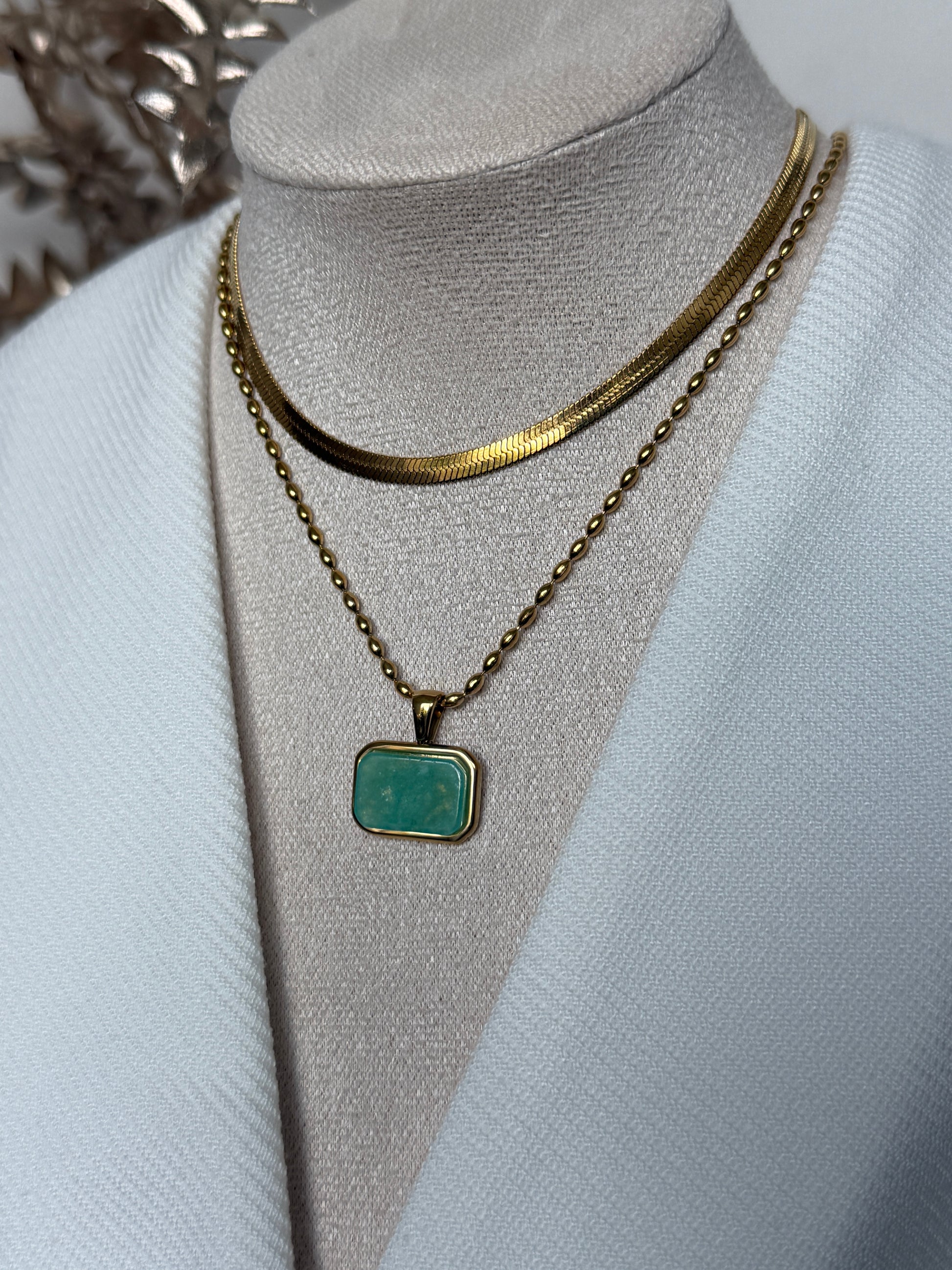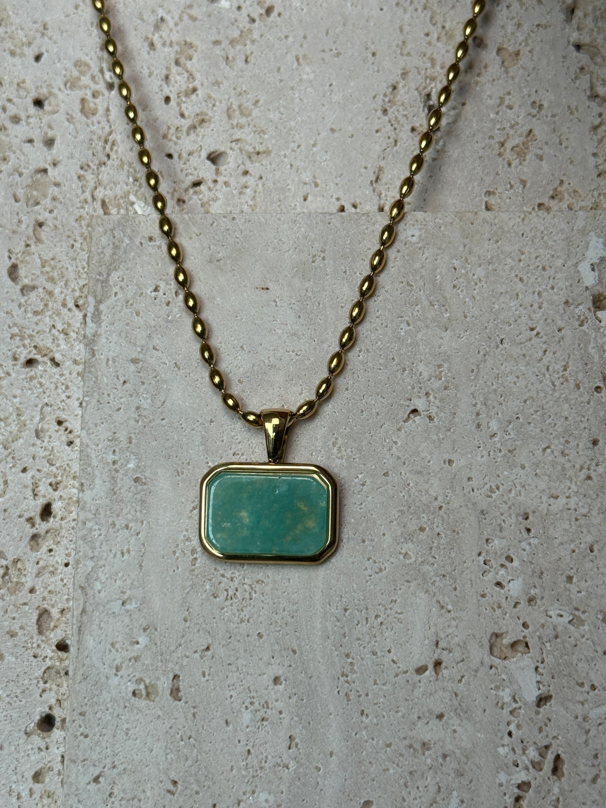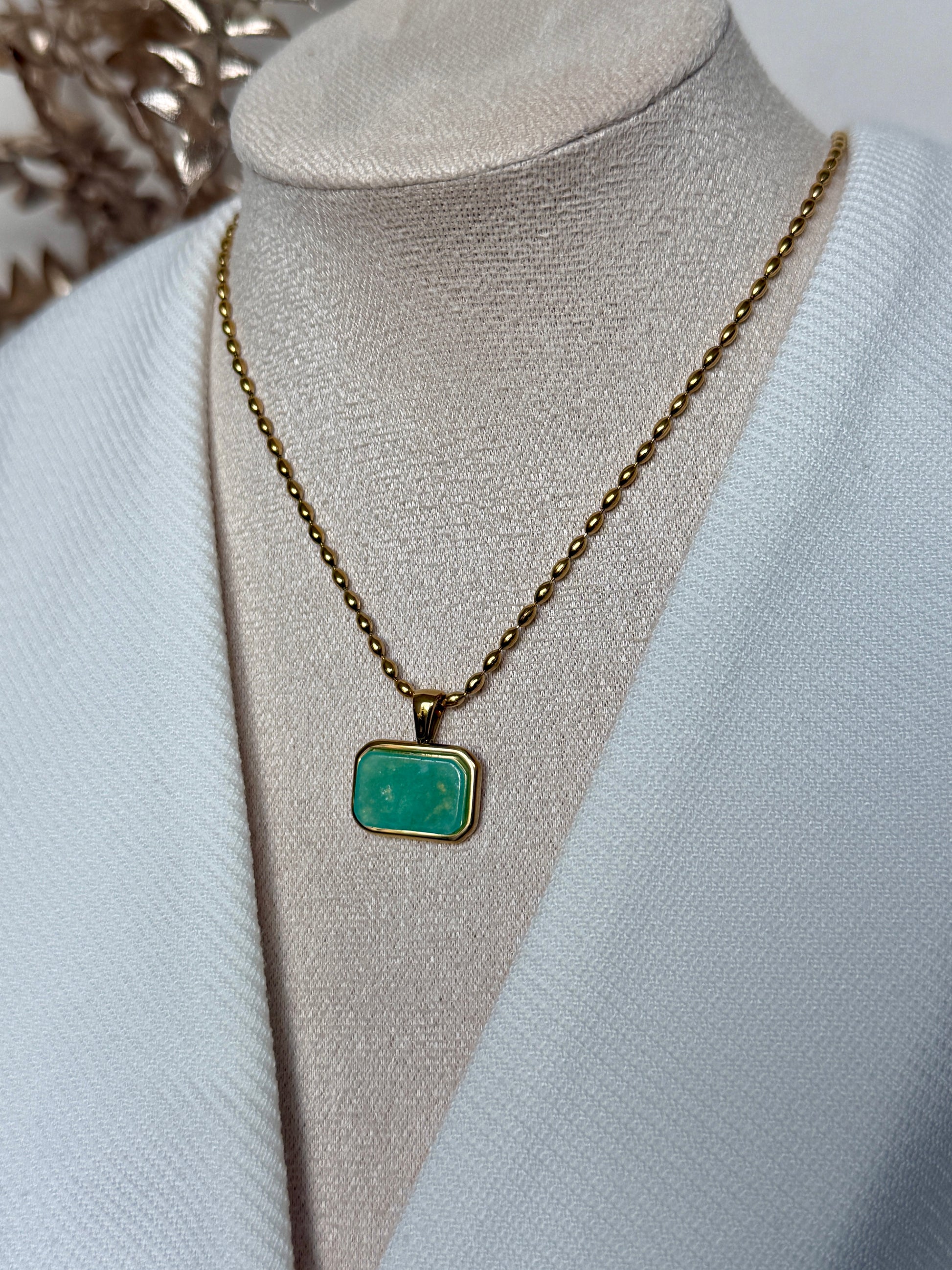 Elegante Halskette mit rechteckigem türkisfarbenem Stein – inspiriert vom Meer, zart und zeitlos für jeden Anlass.