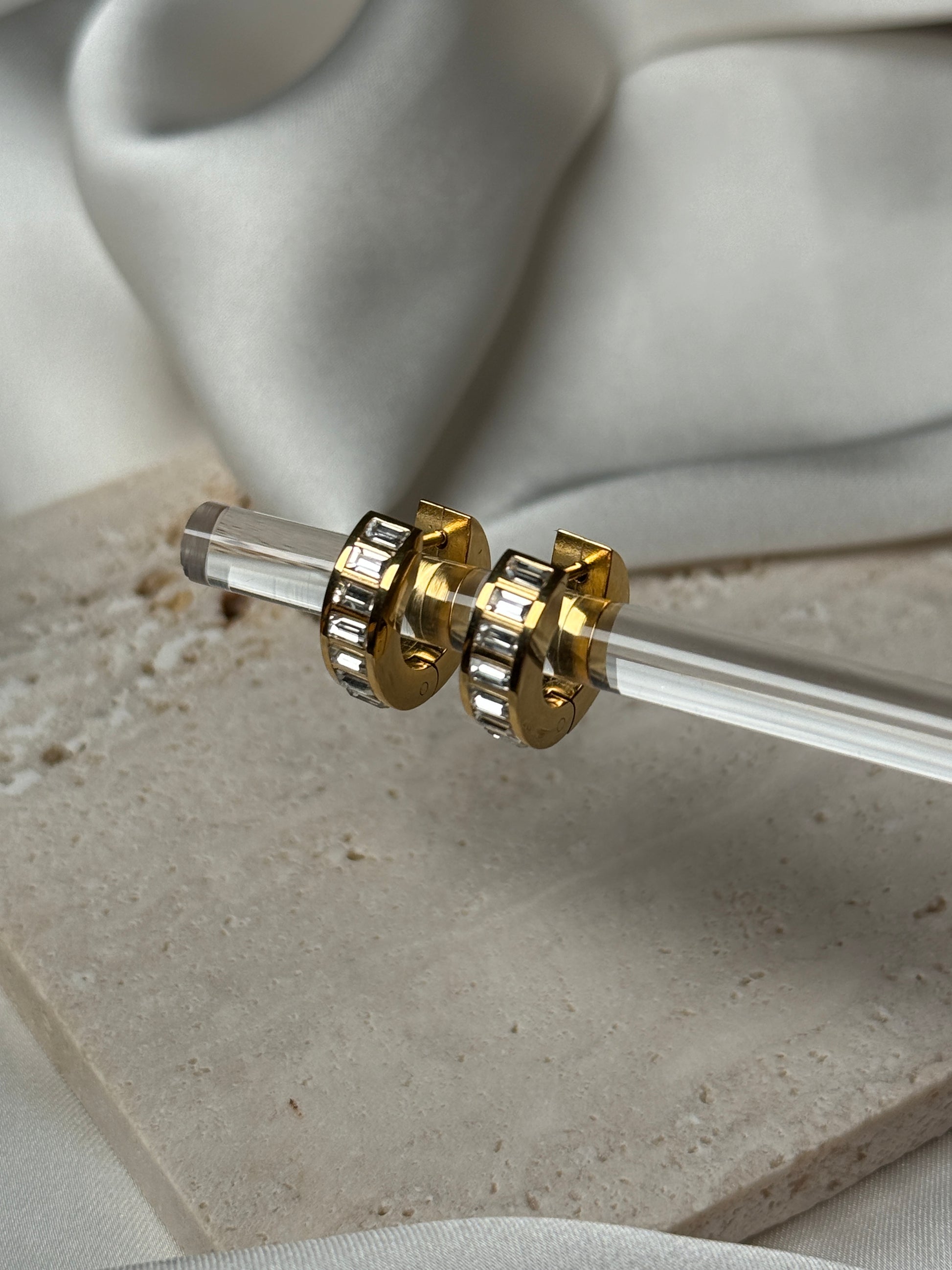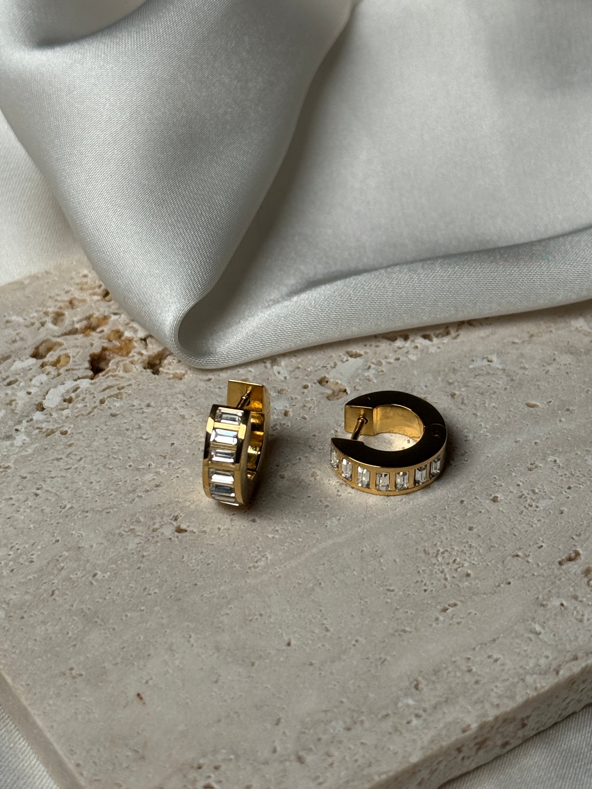 Stilvolle Creolen mit rechteckigen Zirkonia-Steinen – modern, elegant und vielseitig kombinierbar für Alltag und besondere Anlässe.