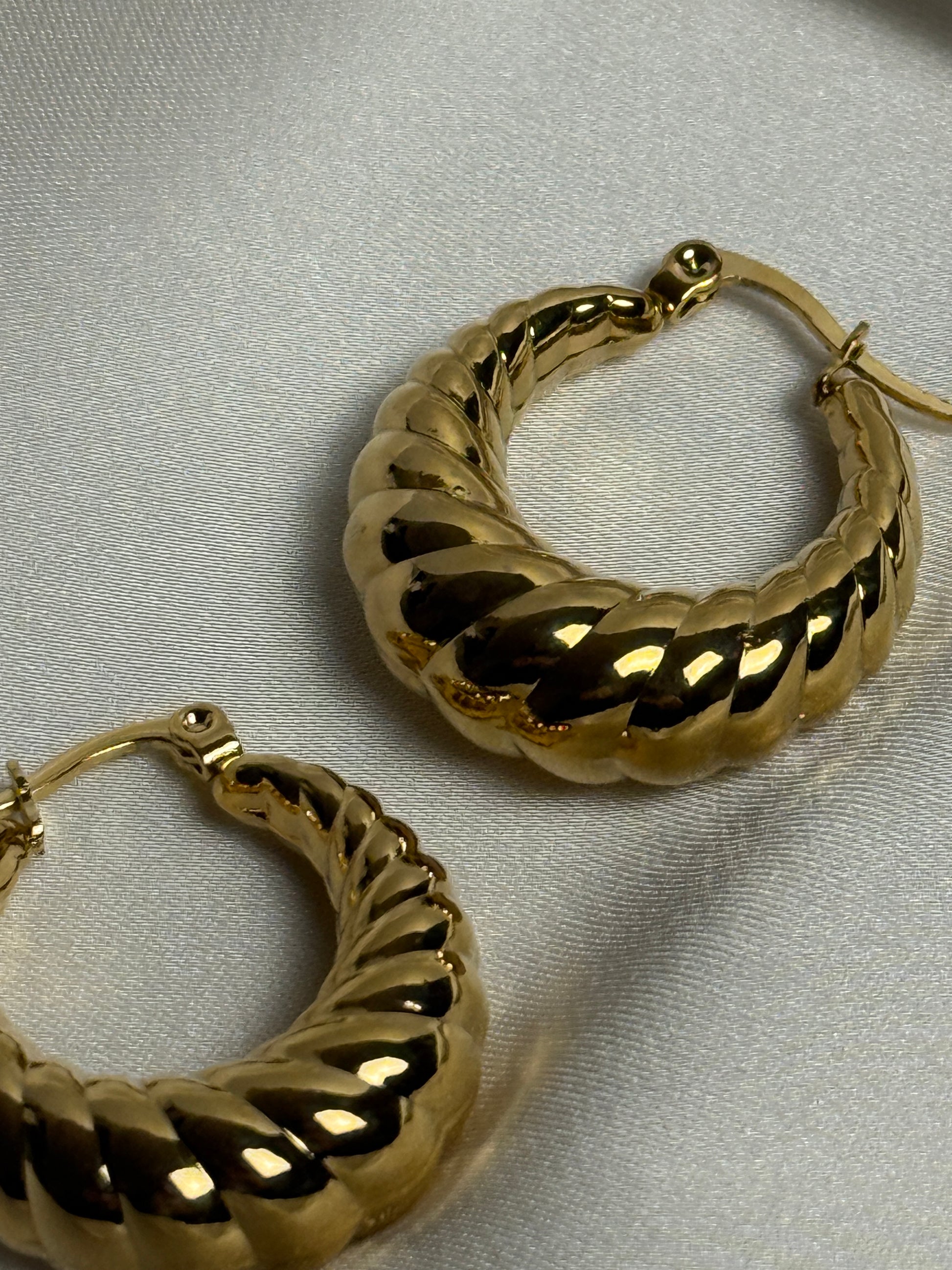 Statement-Creolen im Croissant-Design aus 18K vergoldetem Edelstahl. Der geschwungene, glänzende Look verleiht jedem Outfit einen Hauch Pariser Eleganz – klassisch, modern und auffällig zugleich.